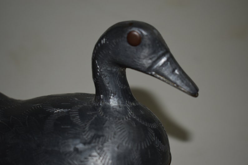 The duck was made in about the 1950’s in Hong Kong and has a really cool stamped motif on the body of it.  Not only that, but the eyes of the duck are also made of brass.