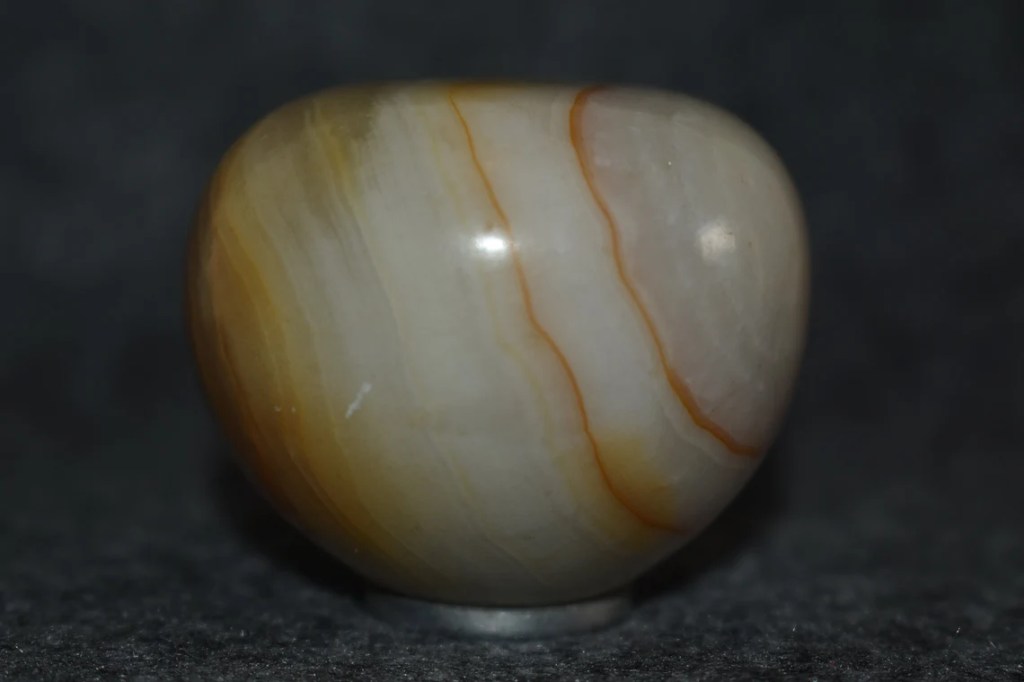 As you can see, it was made out of slag glass that has a swirl pattern to it, and it has multiple colors to it.  With cream, tan, yellow, brown and even white colors, it also has a flat top and tapered sides to it.